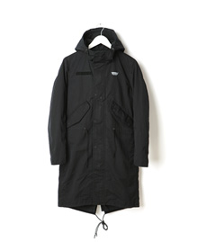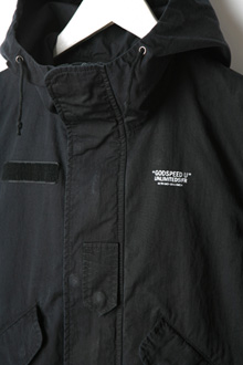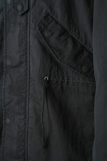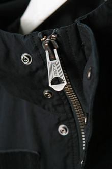 表面に撥水加工を施した、高密度なコットンナイロンを使用。独特な張りのある素材感が高級感を出している。さらに、バイオ加工をすることで絶妙なユーズド感を演出。ジップはヴォルディスのジップを使用するなどこだわりぬいたミリタリーコート。