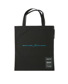肉厚のキャンパス生地で作られたエコバック。フロントにはブランドからのメッセージがプリントされている。