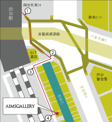 [4]70mほど歩くと左手に写真のような建物が見えてきます。そのビルの地下1階がAIMSGALLERYです。